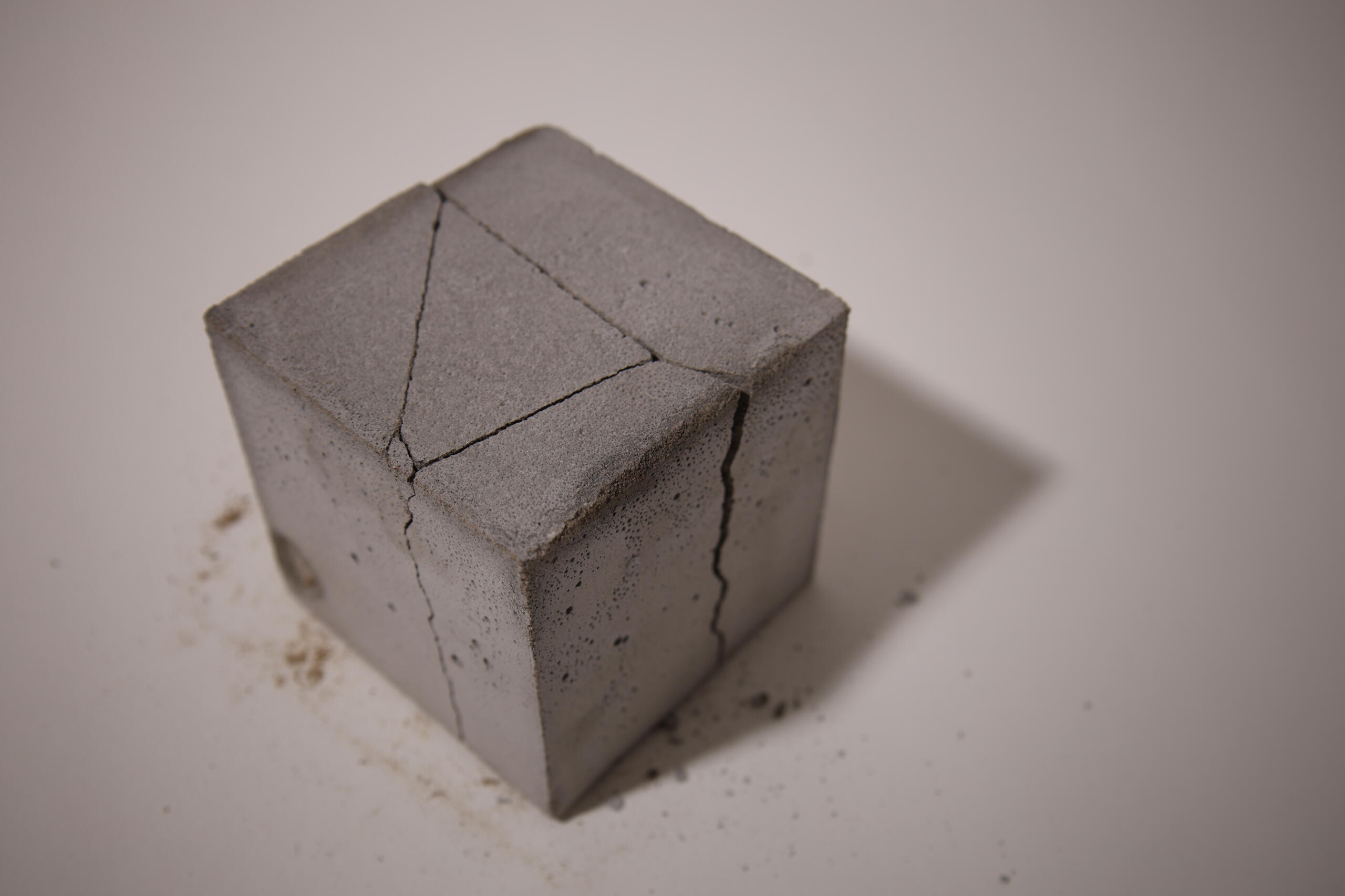 Mixed media time-based sculpture/performance"Breaking Point" consists of a series of cast concrete cubes that gradually fracture and collapse over several hours in front of the audience. The breaking is triggered through the use of d a slow-reacting chemical substance that exerts internal pressure until the structure gives way.Each cube follows its own rhythm of failure—determined by the density, casting process, and unseen tensions within the material. The sculptures perform their own undoing, cracking apart in real time without external force.This work speaks to the quiet drama of inner rupture—the moment before collapse, the sound of slow yielding. It plays with the illusion of solidity, drawing attention to how materials (and perhaps people) hold until they no longer can.Breaking Point is as much about disintegration as it is about presence: a meditation on pressure, endurance, and the inevitability of transformation.
